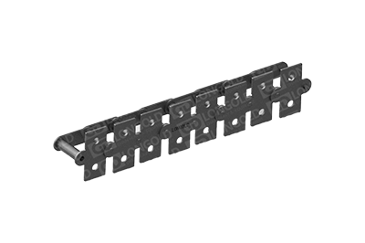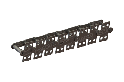 与短节距A系列滚⼦链条相⽐,链条节距增加1倍(称为双倍节距),链板形状为直板形,链条的两侧带有直立板附件,且附件上有两个螺孔的形式。依照JIS,ISO和ASME标准。