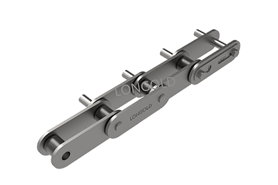 ANSI标准滚子链条的节距增加一倍,其他尺寸不变的链条。链条执行ISO标准,链条单侧链板向上下两侧延伸,且延伸的附板上带有两个孔。
