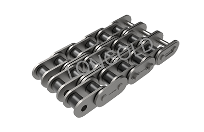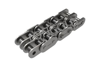 将短节距A系列传动滚⼦链条的链板变更为直板形,直接将⼯件承载于链板之上进⾏输送的链条。链条的列数是3列。也根据客户需求定制非标附件加装在链板或者销轴上。