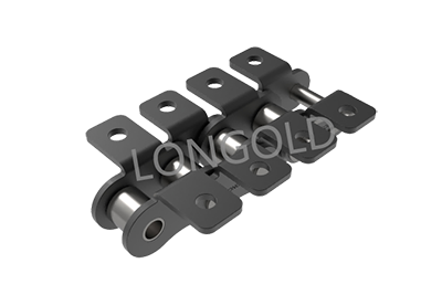 将原来的免加油耐热规格和食品机械专用免加油规格链条统一整合后形成的规格,链条单侧销轴的延长形式。可很大程度满足客户对链条使用中免加油、长寿命的需求,在一些输送线上得到广泛的运用。