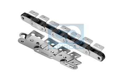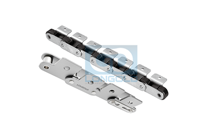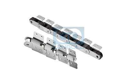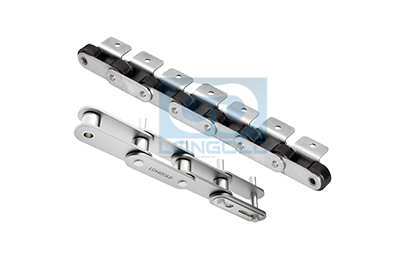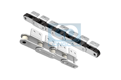 使用超级工程塑料制滚子,本体为不锈钢钢制的双倍节距链条。在套筒和滚子之间可无加油使用。实现了轻量化和低噪音化。链条单侧加装单孔弯板附件或者两孔弯板附件,附件表示为A1或A2。