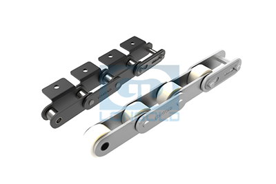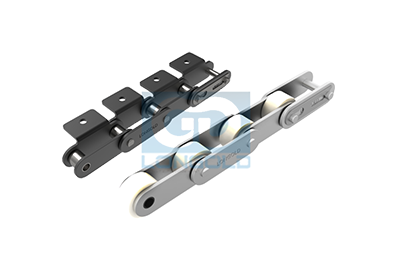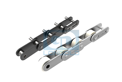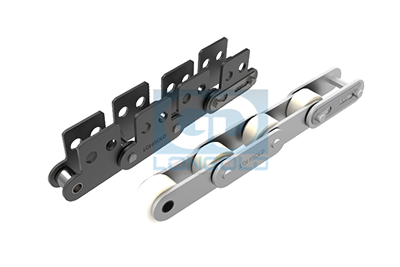 采用特殊工程塑料制滚子,与工程塑料制滚子相比,噪音更低。本体为钢制的双倍节距链条,在套筒和滚子之间可无加油使用。实现了轻量化和低噪音化。根据不同的使用要求,本体链条可制成通用规格,NP规格和SS规格。链条单侧加装单孔弯板附件或者两孔弯板附件,附件表示为A1或A2。