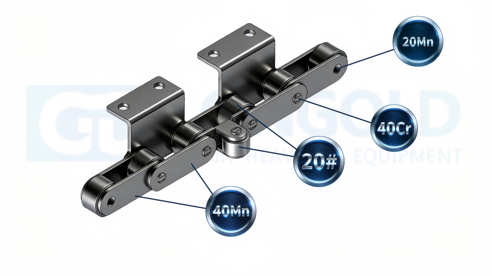 附件尺寸的增加,那么其受力面积也随之增加,既能提升链条的运输能力,运输的安全性也同样能够得到提升。