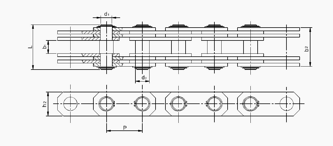 拔拉链条的链板采用特殊的扁平六边形链板,这种链板能够提供更大的抗拉强度。