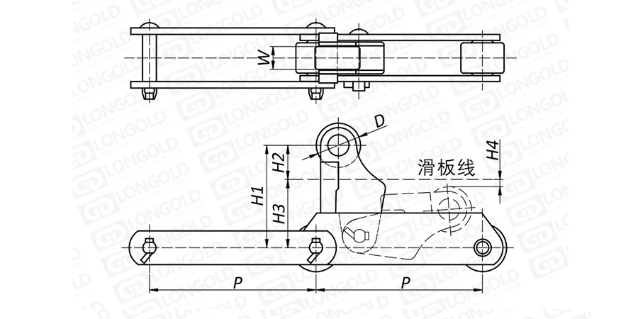 用于台车或在斜坡输送圆筒状输送物时防止超程,是最适合贮存情况使用的链条。