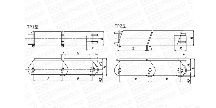 上图为带TP附件的大型输送链的结构图。