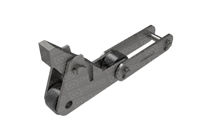 安装了用来按压滑板上的输送物或台车等的附件的链条。附件形式有1型和2型,其中1型:附件上不带垫板(KD1),2型:附件上带垫板(KD2)。