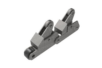 带推头的大型输送链是一种用于物料输送的链条,它通常用于木材加工、食品输送、清洗线等需要特殊附件以适应不同输送需求的场合。