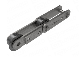 在内链节中间安装R滚子(CRR型)、F滚子(CRF型),以支撑输送物的重量,易磨损的移动滚子部位比较容易替换。虽然链轮是在S滚子部位啮合,但请使用能错开中间滚子的链轮。详情请咨询隆德技术人员。
