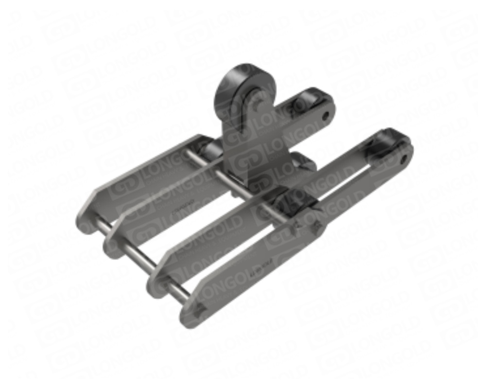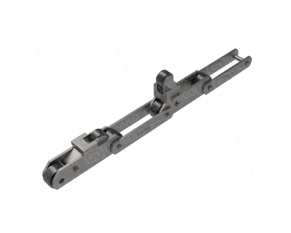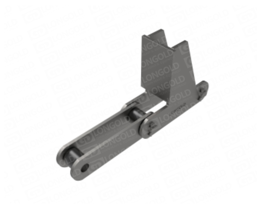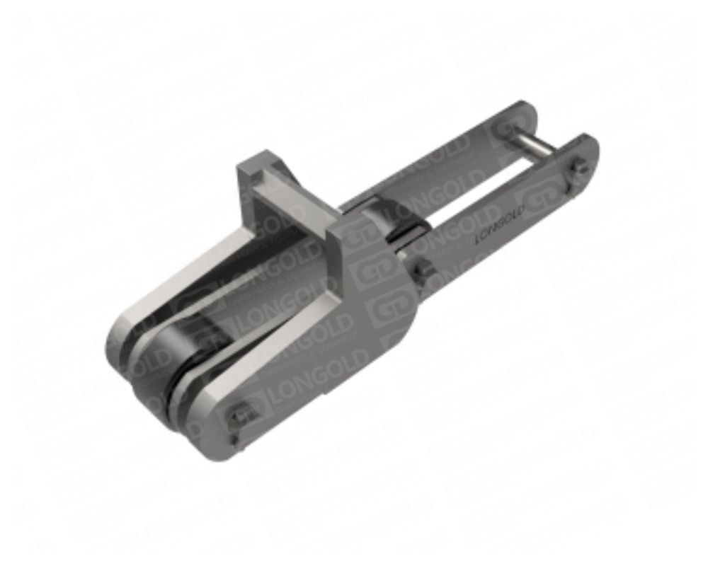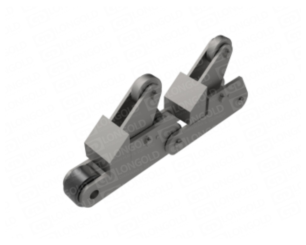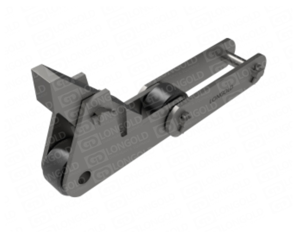 带推头的大型输送链是一种用于物料输送的链条,它通常用于木材加工、食品输送、清洗线等需要特殊附件以适应不同输送需求的场合。