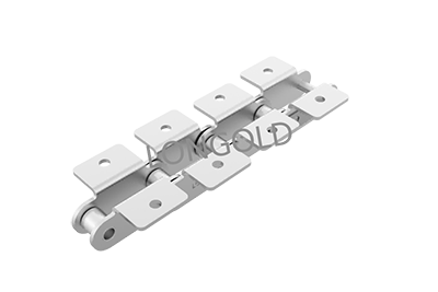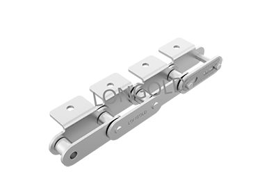 使用18-8SUS相当于SUS304材料,销轴和套筒之间插入特殊工程塑料制衬套。是具有免加油且长寿命特点的双倍节距输送链。