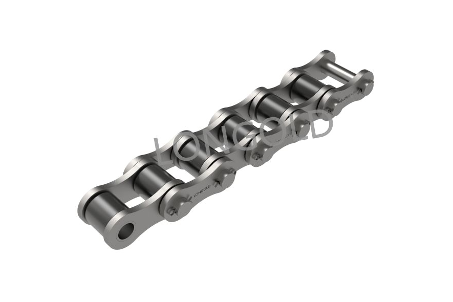 隆德开口销滚子链条符合ASME / ANSI 标准,链条基本尺寸与A系列标准滚子链条一致,链条铆接形式为开口销型。