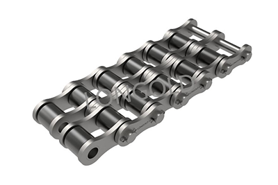 滚子链条每节连接处销轴一端采用开口形式,用开口销卡住以防外链片脱落。适用于需要快速拆卸更换链节的场合。